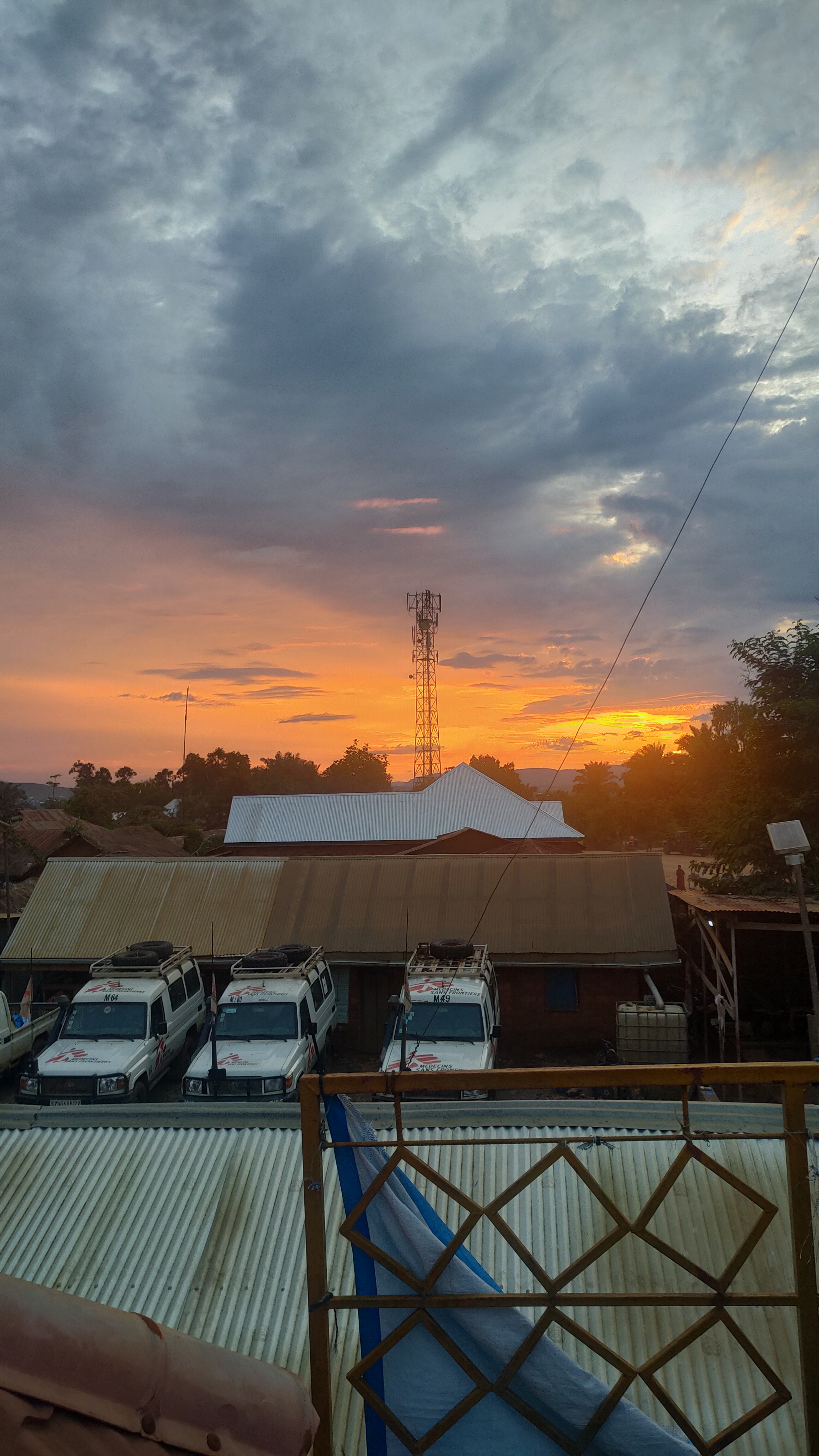 Hoy no tengo energía para deporte (como prácticamente cada día), así que optamos por subirnos a la terraza con una cerveza fresquita y ver el atardecer mientras comentamos cómo ha terminado la jronada. La conversación gira entorno al equipo, MSF, el trabajo o algún que otro cotilleo.